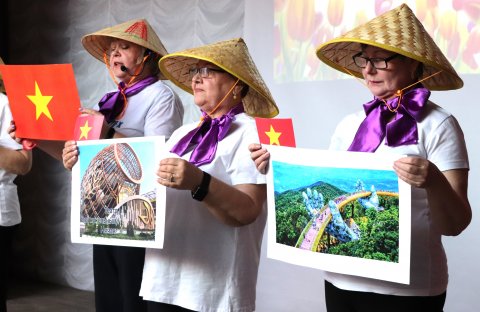 Конкурсному жюри в составе главы Киришского района Тимофеева К.А., председателя областной организации ветеранов Олейника Ю.В., председателя ТИК Киришского района Соловьевой Е.В. и председателя районного совета ветеранов Фаниной Т.В. предстояла нелегкая задача – оценить яркие выступления команд, презентовавших зрителям зажигательную Кубу, таинственный Китай, завораживающую Индию, увлекательную Сербию, загадочный Вьетнам, яркую Коста-Рику, жаркую Кению и гостеприимный Казахстан.